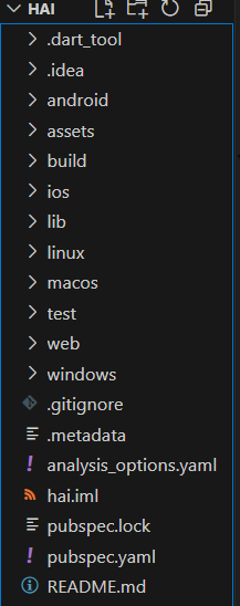 lib/ berfungsi untuk menyimpan seluruh kode Dart. main.dart adalah class utama yang pertama kali akan di eksekusi