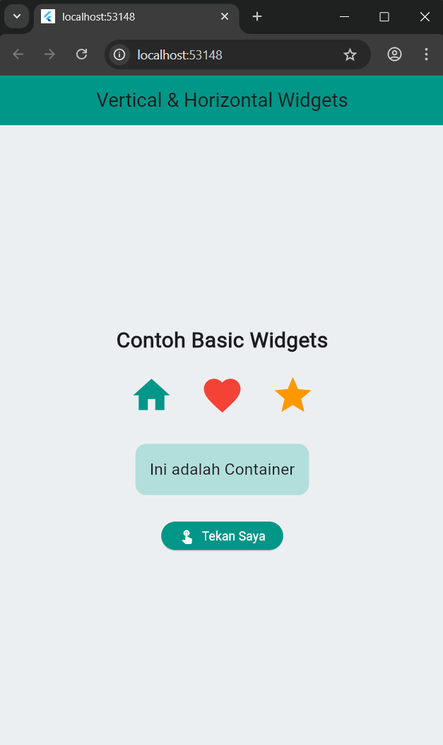 1. Buatlah tampilan widget secara vertical dan horizontal dengan menggunakan minimal 3 buah basic widget dalam 1 tampilan