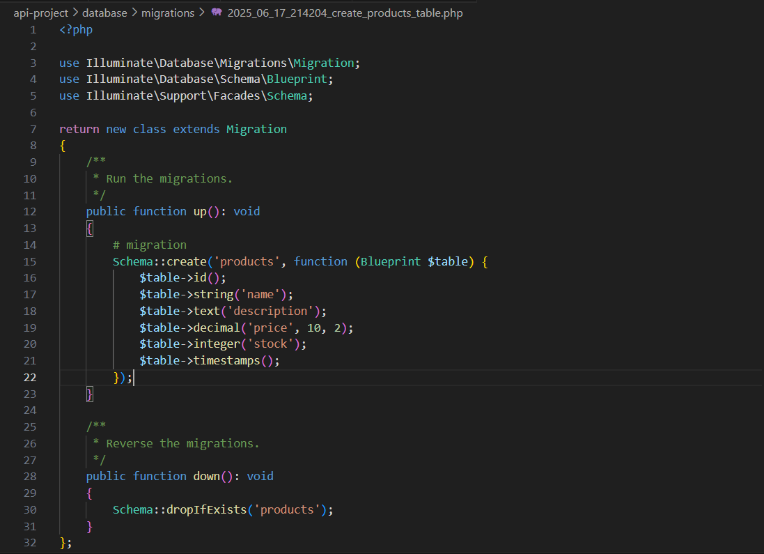 Isikan file migration dengan :