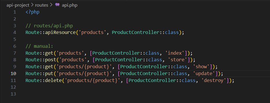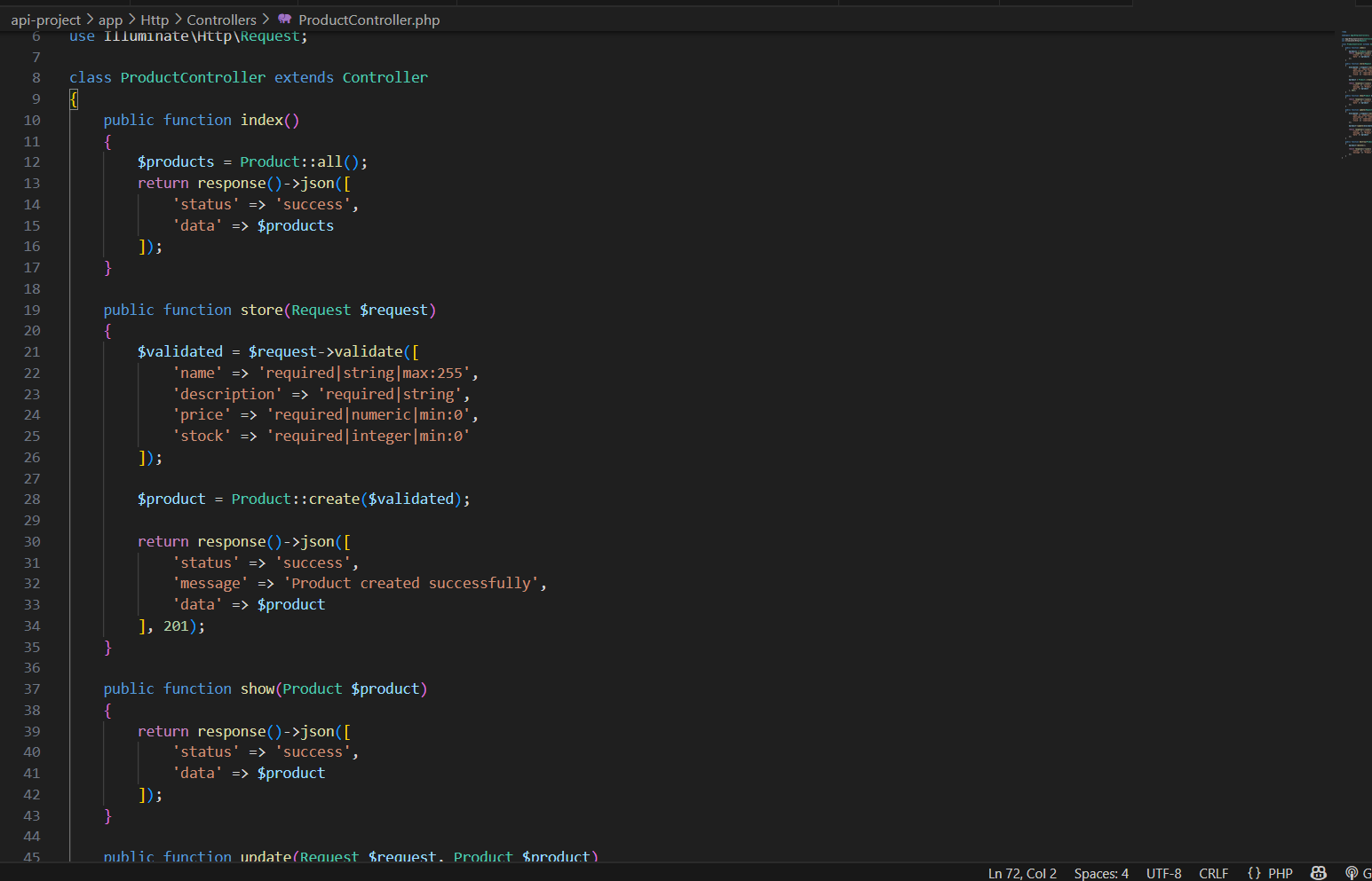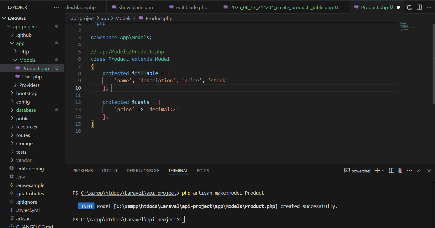 Buat API Controller dengan mengetikkan: php artisan make:controller ProductController --api