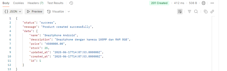 Dan jika berhasil tampilannya akan seperti dibawah ini. Untuk 201 Created artinya Resource berhasil dibuat