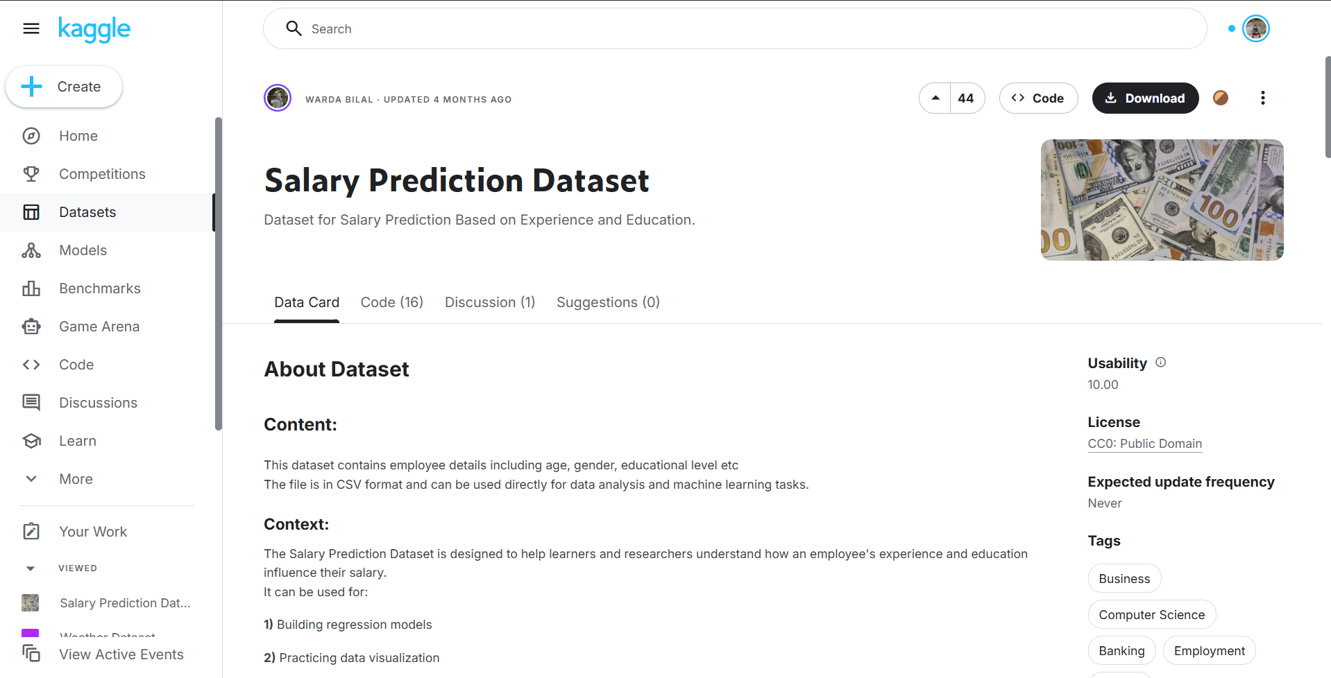 Dataset yang digunakan berisi informasi profil pekerja dan gaji tahunan. Dataset ini digunakan untuk melatih model Machine Learning dalam memprediksi gaji berdasarkan beberapa faktor penting.