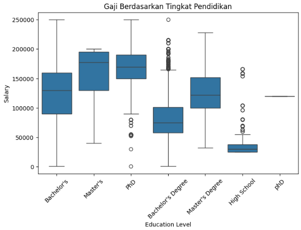 Distribusi gaji berdasarkan tingkat pendidikan: