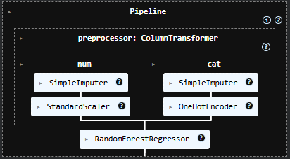 - Penggabungan preprocessing dan model menggunakan Pipeline